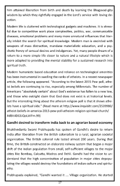 la ng the villages would destroy the founda ons of Indian culture and spiritu-