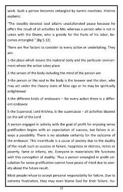 work. Such a person becomes entangled by karmic reac ons. Krishna