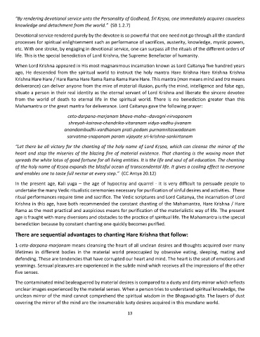 ago, He descended from the spiritual world to instruct the holy mantra Hare Krishna Hare Krishna Krishna