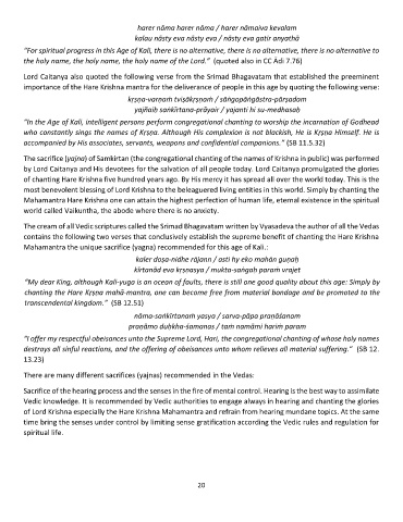 importance of the Hare Krishna mantra for the deliverance of people in this age by quoting the following verse: