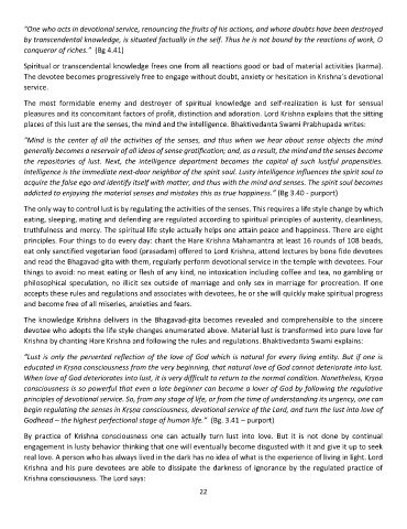 devotee who adopts the life style changes enumerated above. Material lust is transformed into pure love for