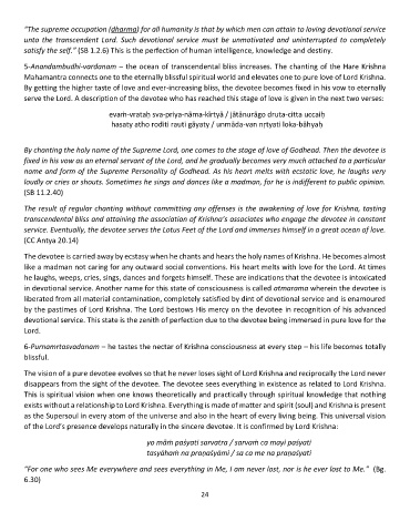 6-Purnamrtasvadanam – he tastes the nectar of Krishna consciousness at every step – his life becomes totally