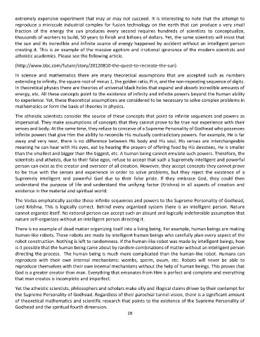The Vedas emphatically ascribe these infinite sequences and powers to the Supreme Personality of Godhead,