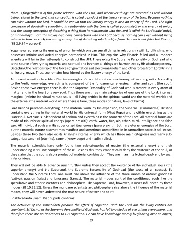 matter and in the heart of every soul. Thus there are three main categories of energies of the Lord: internal,
