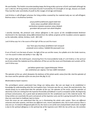 world also enters the material world by reflection off the sun and the moon and illuminates and sustains all life.