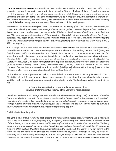 quote Srila Prabhupada gives some examples of Lord Krishna’s infinite mystic powers: