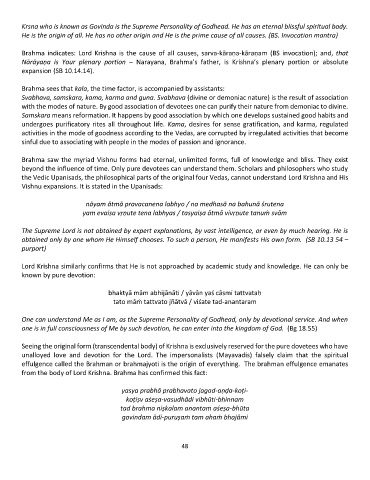 Brahma indicates: Lord Krishna is the cause of all causes, sarva-kāraṇa-kāraṇam (BS invocation); and, that