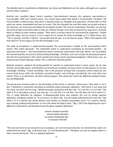 inconceivable. With one’s limited senses, one cannot argue about that which is inconceivable. Therefore, the