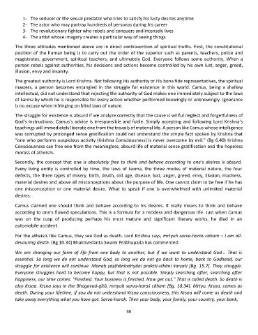 God’s instructions. Camus’s advice is irresponsible and futile. Simply accepting and following Lord Krishna’s