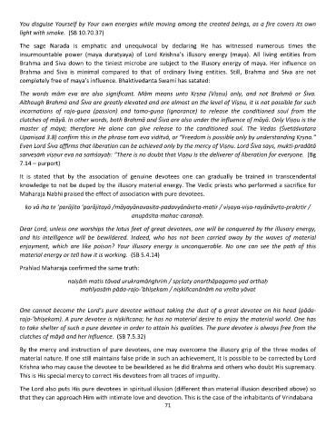 knowledge to not be duped by the illusory material energy. The Vedic priests who performed a sacrifice for