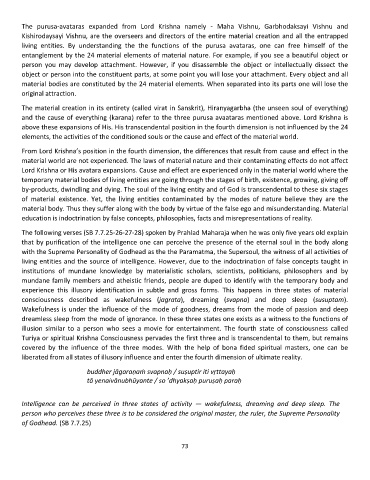 living entities. By understanding the the functions of the purusa avataras, one can free himself of the