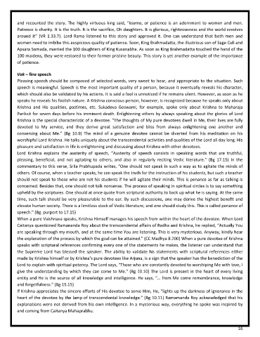and recounted the story. The highly virtuous king said, “ksama, or patience is an adornment to women and men.