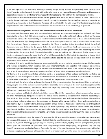 fast, Yamaraja was forced to restore her husband to life. There is another similar story about Savitri, the wife of