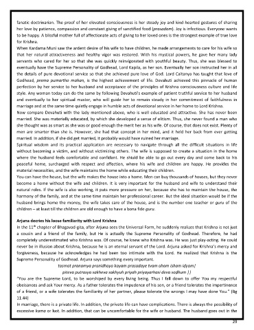 perfection by her service to her husband and acceptance of the principles of Krishna consciousness culture and life