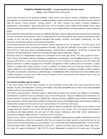 “POWERFUL FEMININE QUALITIES” – A Lecture by HG Hari Vilas Das Prabhu