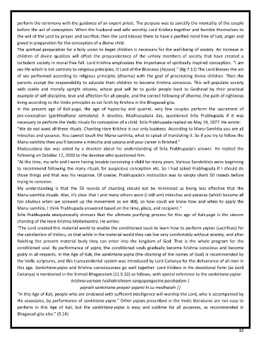 turbulent society in moral free fall. Lord Krishna emphasizes the importance of spiritually inspired conception. “I am
