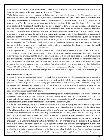 unacceptable in Vedic culture. Similarly, filing for divorce is not permissible. Every effort is made to rectify the errant