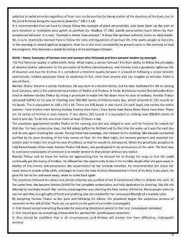 attempt to maintain herself. Her sincere preoccupation was chanting the holy names of Krishna. Many people came to