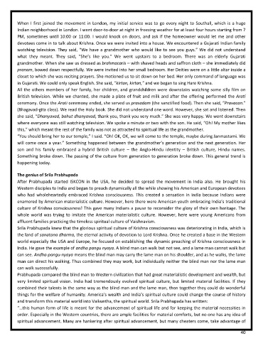 culture of Krishna consciousness! This gave many Indians a pause to reconsider the glory of their own heritage. The