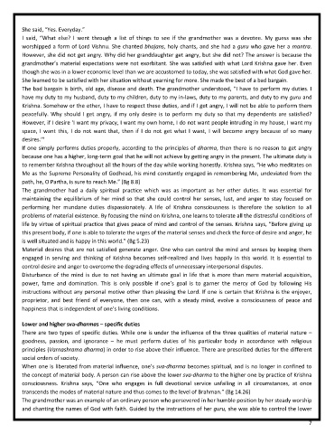 grandmother’s material expectations were not exorbitant. She was satisfied with what Lord Krishna gave her. Even
