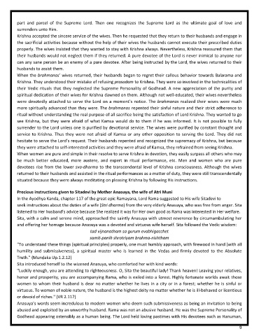 devotees rise from the lower sva-dharma to the transcendental level of Krishna consciousness. Although the wives