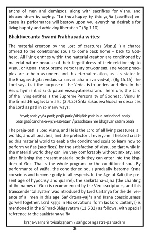 performance of yajña, the condi oned souls gradually become Kṛṣṇa