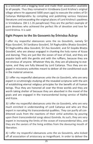 4) I offer my respec ul obeisances unto the six Gosvāmīs, who kicked