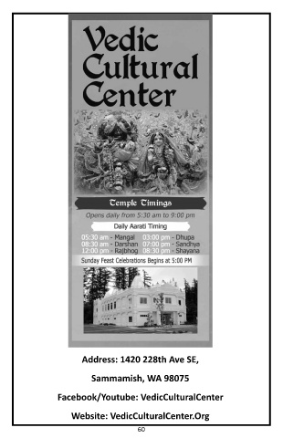 Address: 1420 228th Ave SE, Sammamish, WA 98075 Facebook/Youtube: VedicCulturalCenter Website: VedicCulturalCenter.Org 60