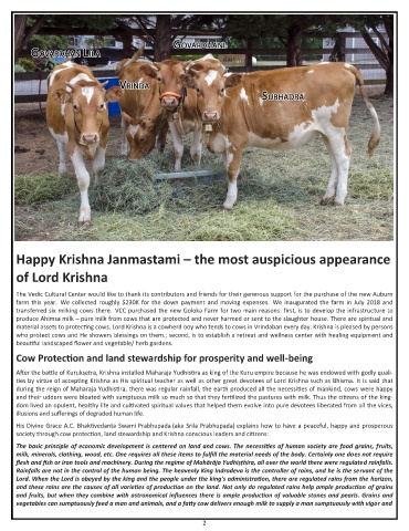 society through cow protection, land stewardship and Krishna conscious leaders and citizens: