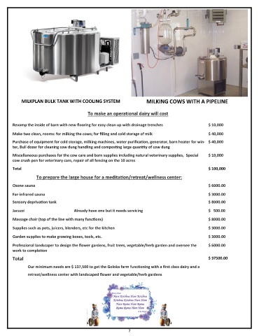 Our minimum needs are $ 137,500 to get the Goloka farm functioning with a first class dairy and a