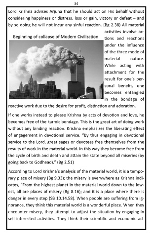ac vi es involve ac- reac ons and influence the of the three mode of nature. material with ac ng the for a achment result for one’s per- one benefit, entangled becomes in the bondage of ad- economic and