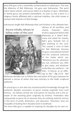 41 bona fide guru and a materially contaminated so-called guru. This was His sukra means semen, and acarya refers to a teacher or guru. Hereditary or family gurus are present everywhere. As soon as one is born in a religious family affiliated with a spiritual tradi on, the child comes in Sukracarya taught Bali Maharaja that Lord Krishna is the ul mate ben- Maharaja decided not to follow the instruc on of his guru because he advised a course of ac on that was contrary