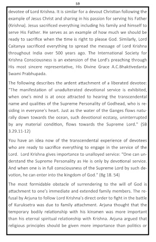 59 devotee of Lord Krishna. It is similar for a devout Chris an following the example of Jesus Christ and sharing in his passion for serving his Father (Krishna). Jesus sacrificed everything including his family and himself to serve His Father. He serves as an example of how much we should be ready to sacrifice when the me is right to please God. Similarly, Lord Caitanya sacrificed everything to spread the message of Lord Krishna Krishna Consciousness is an extension of t