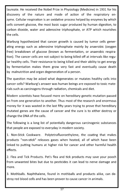 cancer cells? Warburg’s answer was human beings are exposed to toxic mate-