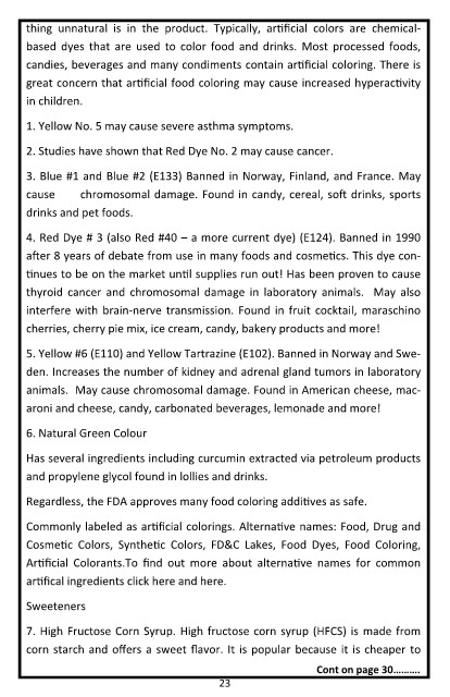 candies, beverages and many condiments contain ar ficial coloring. There is