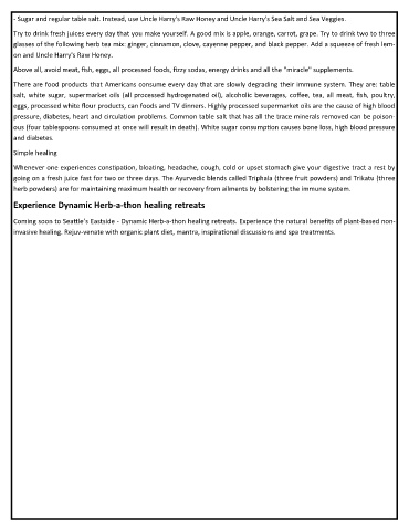 - Sugar and regular table salt. Instead, use Uncle Harry's Raw Honey and Uncle Harry's Sea Salt and Sea Veggies.