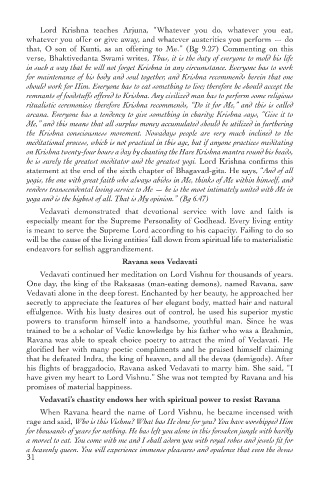 his fl ights of braggadocio, Ravana asked Vedavati to marry him. She said, “I