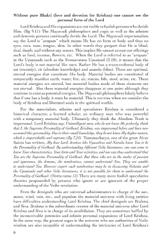Without pure Bhakti (love and devotion for Krishna) one cannot see the