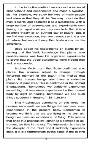 experiments and sis. For example, we study the lives of many people and observe that they all die. We may conclude that man is mortal and postulate it as a hypothesis. With a number of observations outright law we find one exception, then we cannot say it is a law of nature, but only a theory that holds under certain Bose began his experiments on that the Vedic knowledge that He to prove that the Vedic statements were indeed true Another Vedic truth that Bo