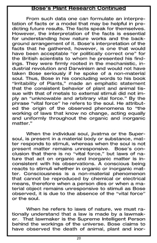 made an emphatic consistent behavior of plant and animal tis- sue with that of metals to external stimuli did not im- ply an “unknowable and arbitrary vital force.” By the phrase “vital force” he refers to the soul. He attribut- observed working of laws that know no change, acting equally and uniformly throughout the organic and inorganic When the individual soul, jivatma or the Super- soul, is present in a material body or substanc
