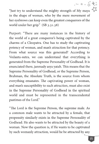 Godhead. He also wants to be attracted by the beauty of a