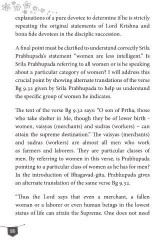 Bg 9.32 given by Srila Prabhupada to help us understand