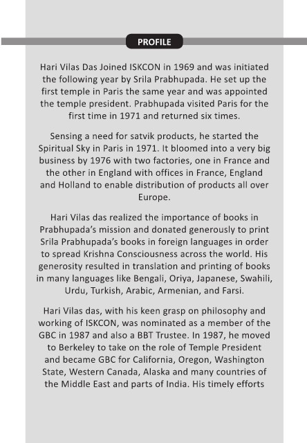 Hari Vilas Das Joined ISKCON in 1969 and was initiated