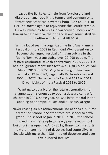 2001 to 2022; Namaste India Festival 2019 to 2022;