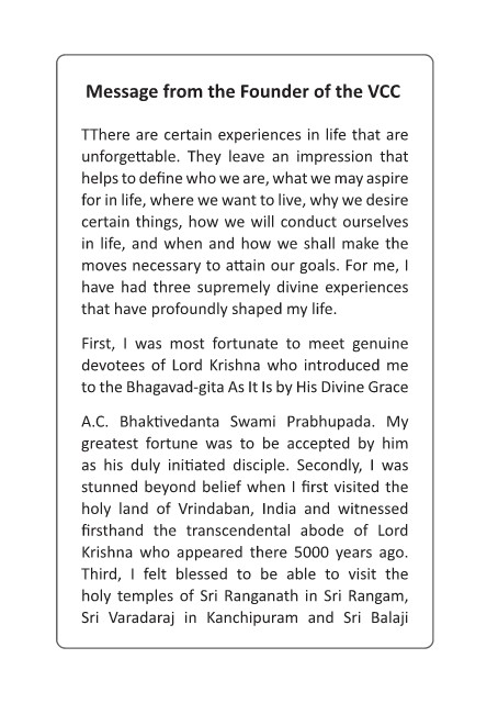 Message from the Founder of the VCC