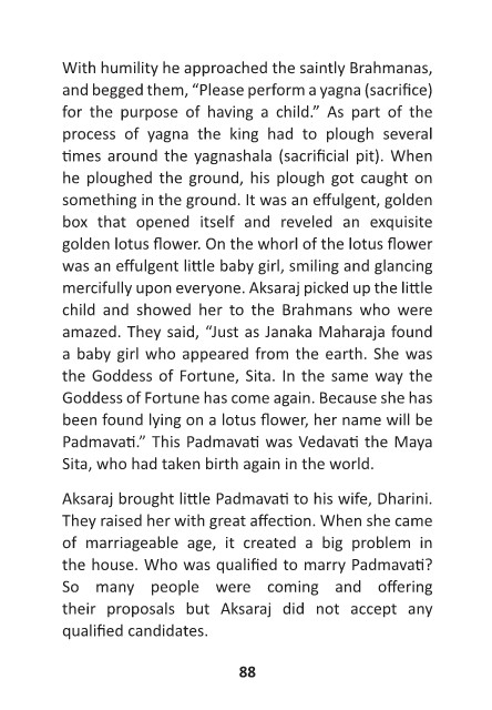 Aksaraj brought little Padmavati to his wife, Dharini.